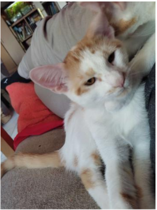 Typhon est un chat très proche des humains. Nourri au biberon a partir de 2 semaines, il a rapidement adoré les gratouilles et les siestes sur son humain. Très joueur, il adore jouer avec ses copains chats. Toujours en demande de câlins, il saura vous charmer avec son regard d'ange et ses ronronnements et vous ne pourrez pas lui résister !