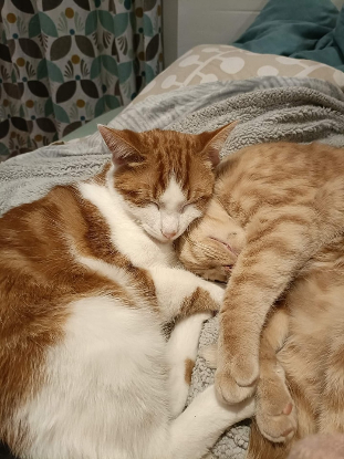 Freeze est un petit curieux : il aime grimper dans chaque recoin de l'appartement pour voir ce qu'il s'y passe. Moins timide que son frère, il adore les câlins et montrer son ventre pour recevoir des caresses. C'est une machine à ronron.