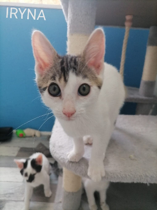 Histoire : Iryna est la sœur de Maxim, Anastasia, Daryna, Hanna, Lylia et Klara . Les 7 chatons erraient à proximité du corps sans vie de leur très jeune maman percutée par une voiture. Nous avons récupéré ces orphelins âgés de moins d’un mois. Leur famille à joué les mamans adoptives en les biberonnant