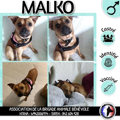 Histoire :Malko a été cédé par sa famille. Caractère: Malko est un chien timide et très sensible, il a besoin d'avoir des repères et de la douceur. Famille recherchée : nous recherchons un environnement stable pour notre petit Malko ainsi qu'une personne qui lui procurera l'attention et la douceur dont il a besoin.