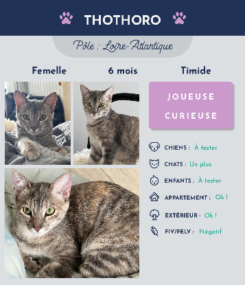 Bonjour, je m’appelle Thothoro et je suis une chatonne très gentille.