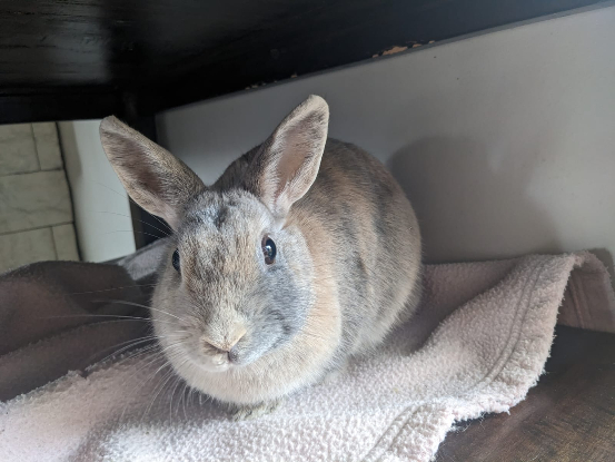 Cette adorable petite lapine a été abandonnée car ses propriétaires ont pris un chiot et la cohabitation avec le chiot était compliquée.