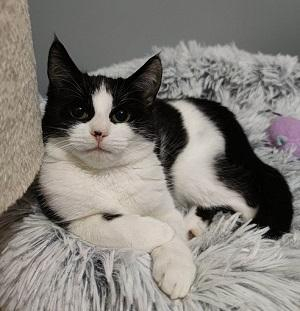 TCHIKI est une chatonne de 3 mois, noire et blanche