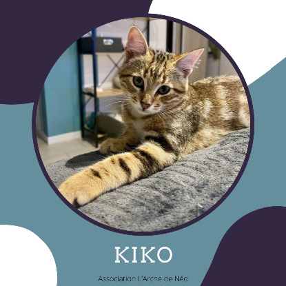 Kiko sera placé identifié par puce électronique, déparasité (puces et vers), avec les 2 injections (typhus, coryza ET leucose). Sa stérilisation est OBLIGATOIRE et à votre charge toutefois l'association rembourse 50% des frais engagés sur facture. La stérilisation doit être faite AU PLUS TARD à 6 mois.
