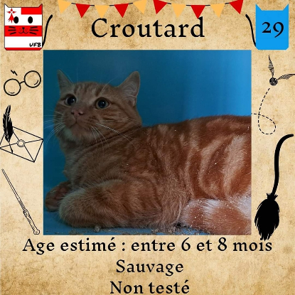 Croutard, mâle de 6-8 mois sauvageon (un comportement normal en fourrière) qui vous attend dans une fourrière du 29. ATTENTION SORTIE AU PLUS TARD LE 25/11/2022 (avant euthanasie) !
