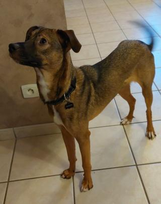 Théa est une jeune chienne de 12 mois, joueuse, affectueuse et pleine de vie. Elle a besoin d'une famille qui pourra lui offrir les besoins basiques d'un jeune chien, c'est à dire du temps, de l'occupation et des sorties pour quelle puisse se défouler.