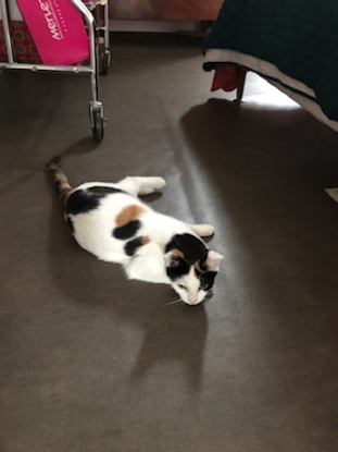 Serena est une gentille minette lâchement abandonnée en forêt. Elle est très sociable, câline et joueuse. Elle est actuellement en famille d'accueil, et s'entend très bien avec la petite chienne (très calme) de la maison. Cette jolie tricolore fera le bonheur d'une famille.