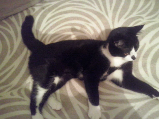Bon, ma vie d’avant n’était pas tip top, et j’ai souvent manqué de nourriture. Bah oui, nous étions tout plein, pour très peu de nourriture … Du coup, j’ai tendance à aller me servir seule maintenant. Je saute très régulièrement sur la table, et vais même directement dans l’assiette de tata pour prendre un petit bout de jambon, de steak ou encore de pomme de terre ou nouilles. Bah quoi ? Quand on aime, on partage non ?