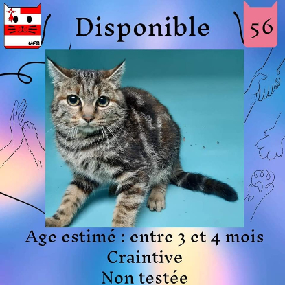 Disponible, femelle de 3-4 mois craintive (un comportement normal en fourrière) qui vous attend dans une fourrière du 56. ATTENTION SORTIE AU PLUS TARD LE 09/12/2022 (avant euthanasie) !