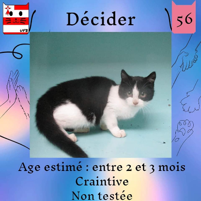 Décider femelle de 3 mois craintive (un comportement normal en fourrière) qui vous attend dans une fourrière du 56. ATTENTION SORTIE AU PLUS TARD LE 09/12/2022 (avant euthanasie) !