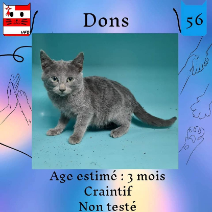Dons, mâle de 3 mois craintif (un comportement normal en fourrière) qui vous attend dans une fourrière du 56. ATTENTION SORTIE AU PLUS TARD LE 09/12/2022 (avant euthanasie) !