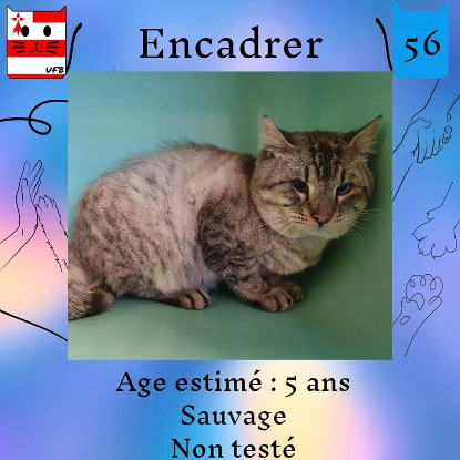 Encadrer, mâle de 5 ans sauvageon (un comportement normal en fourrière) qui vous attend dans une fourrière du 56. ATTENTION SORTIE AU PLUS TARD LE 09/12/2022 (avant euthanasie) !