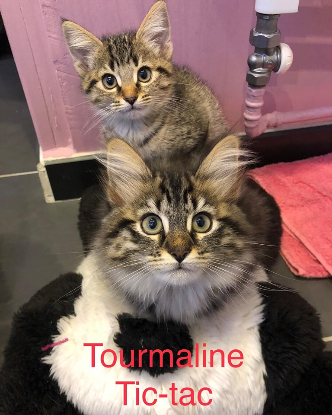 A l'adoption, uniquement à deux, Tic-Tac (mâle, poils mi-longs) et Tourmaline (femelle), 3 mois.