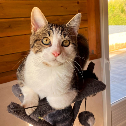 Adoptable en Bretagne en duo avec sa soeur Camille pour 2 fois plus d'amour ou dans un foyer ayant déjà un jeune chat sociable !