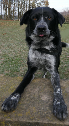 Scout est né le 10 juin 2020. C'est un mâle croisé border collie/labrador qui pèse environ 25 kilos.