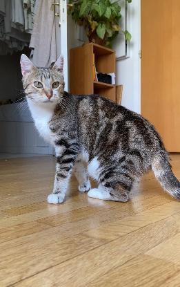 Molly est une adorable chatte qui met du temps à s’adapter à son environnement. Patience, patience ça vaut le coup ! Une fois en confiance, elle vient chercher les caresses et vous tourne autour pour se faire gratter le haut de la tête. Elle est très joueuse : plumes, balles… ou bien simplement sa propre queue (fou rire garanti) ! Elle est très attachante et commence depuis récemment à s’exprimer. Elle adore les caresses, et en a besoin pour avoir confiance. Elle est gentille, douce, en demande d’attention et propre.