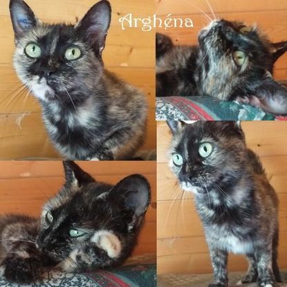 Arghéna 3 ans Adorable petite chatte, douce, gentille, affectueuse, discrète. Elle appréciera une vie calme et chaleureuse. Gentille avec les enfants. Elle semble craindre les autres animaux. Négative fiv / felv. Identifiée, primo vaccinée, stérilisée, dépistée. Frais d'adoption 160€