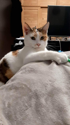 Sa tata nous la décrit ainsi : "La petite Ruby adore quand on est en position couché, c'est une invitation à se vautrer sur nous pour des caresses ou jouer. Dès qu'elle monte pour manger, 10sec plus tard elle miaule car elle est seule et descends nous rejoindre Mais dès qu'on est debout, elle flippe La petite Ruby est adoptable même s'il y aura un travail à faire pour qu'elle n'ait pas peur en position debout."