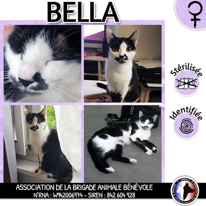 ● Carte d'identité : Née le 01/08/2017 ● Localisation : Se trouve en famille d'accueil dans le 92 ? (Covoiturage possible) ● Ententes : ? OK ? OK ? OK ● Son histoire : Elle vivait avec de nombreux autres chats dans des conditions inadaptées : pas de litière, surpopulation, pas de sociabilisation. ● Son caractère : Bella est une exploratrice qui aime escalader et ramener de petits cadeaux (comme des peluches) dans le lit de ses humains. Très attentive, elle aime bavarder ? C'est aussi une amatrice de ronrons party, lovée contre un humain à câliner 3 ● Famille recherchée : Une famille qui aura une grande place pour accueillir Bella et tout l'amour qu'elle a à donner ? ● Adoptable sous contrat associatif, identifiée par puce électronique et stérilisée. ● Frais d'adoption : 160€.