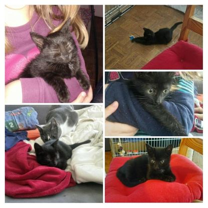 Voici Pistache, chatonne née aux alentours du 1er mai. Elle a été récupérée dans le vide sanitaire d'une école avec ses frères et soeurs, sans maman. Elle adore les enfants, les chats, les chiens, les humains... et les mouches ! C'est une petite curieuse très extravertie qui aime être au centre de l'attention. Elle a le poil court, noir ébène et le bidon blanc.