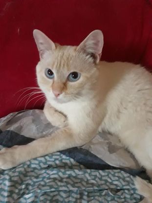 Welcome est un jeune chat très calin. Il a été déposé au poste de police dans une valise. Heureusement nos collègues ont eu la bonne idée de nous contacter et nous avons pu le récupérer et le confier à une famille d'accueil. Il est castré et identifier au Collectif.