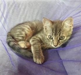 2,5 mois - Tigrée grise - Née le 27/04/19, les 2 chatons Pirou et Pirouette sont élevés en famille avec des enfants et un grand chien. Ils sont joueurs, curieux et câlins. Un don est demandé pour chaque adoption.