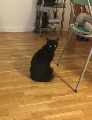 Vahiné était une chatte qui venait de temps en temps chez Marie-Pierre et qui, mi-novembre, a élu domicile avec ses 3 bébés déjà tous adoptés : Tichou, Temis et Telma