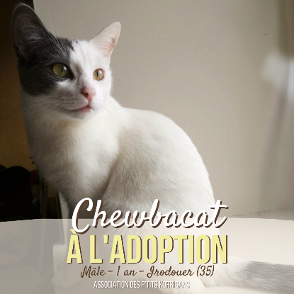 Chewbacat a été recueilli tout petit sur un site de prolifération. Aujourd'hui c'est un chat câlin, joueur, tranquille : un matou adorable qui n'attend plus que sa famille pour la vie !