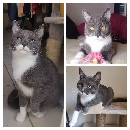 C'est encore un jeune chat, il a 6 mois et est plein de vie. Tel un chaton il adore jouer et a besoin de se dépenser mais si vous lui proposez une séance gratouille il ne refusera jamais !