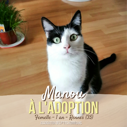 Manou vient d'un site de prolifération sur lequel 13 chats ont été sortis entre l'ADPK et la SPA, dont la petite Nuit et le petit Sirius(tous les 2 aujourdhui adoptés).