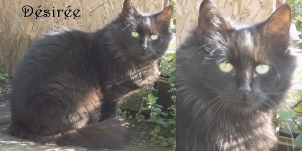 Désirée 3 ans Elle adore être dans les bras, câlinée, chouchoutée. Elle craint facilement les autres chats, donc conviendra plutôt pour un foyer sans ou avec un seul autre chat très cool. Adorable avec les enfants. Identifiée, vaccinée, dépistée négative fiv / felv, stérilisée. Frais d'adoption 160€