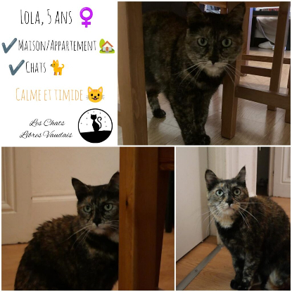 Ainsi, la belle Lola, à la robe écaille de tortue, est tout à la fois intelligente, prudente, timide et discrète. Sage comme une image, elle aura besoin de temps pour faire confiance. Qui sait ce que se cache derrière cette confiance acquise ? Et malgré sa timidité, Lola est d’une gentillesse inégalable