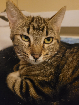 Taoky est un chaton femelle de 4 mois et demi. Elle est un peu timide mais adore les câlins. C'est une grande joueuse et chasseuse