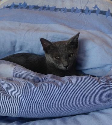 Précieux est un petit mâle de 2 mois et demi que nous avons mis beaucoup de temps à trapper dans le vide sanitaire d'une école. C'est un chaton gris cendré foncé, très haut sur patte et au visage fin et triangulaire. Il est très câlin, nous le surnommons diesel tellement il ronronne fort. Par contre il ne faut pas chercher à le porter ou à le coincer, il fuit. Il vient toujours de lui même et adore sa tranquillité. Il put être un peu pénible le soir lorsque l'on se couche car il réclame énormément de câlins dans le lit (quitte à pousser mon livre avec son museau)