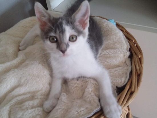 Tibou a été trouvé par une petite fille dans l'allée d'un immeuble, il a été confié aux bons soins de Solange car il était malade. Aujourd'hui il a 6 semaines environ et il est en pleine santé. Joueur et câlin il s'entend bien avec les autres chats.