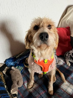 Le cas de Layka est très particulier : elle a été trouvée blessée et l'association Miranos a los Ojos l'a récupérée dans un état critique. En plus d'avoir le sacrum cassé, elle était extrêmement maigre et a dû être hospitalisée de suite.