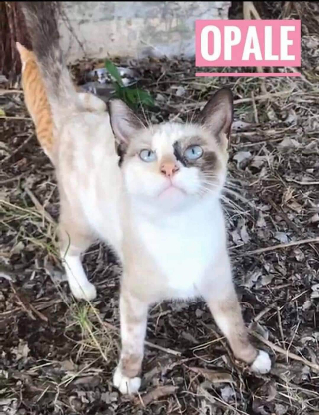 Opale est une adorable minette de 10 mois tricolore croisée siamois (robe chocolat crème et blanc, yeux bleus). Elle est très sociable avec les humains et très câline. Une petite douceur qui fera le bonheur d’une famille.
