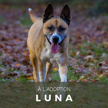 Ne vous fiez pas à son âge : Luna est encore très énergique ! C'est une grande joueuse, qui aime partager de longues balades en forêt ! Elle connait la marche en laisse et est habituée à se balader avec une grande longe. Elle n'a aucun souci avec les vélos, les voitures et les coureurs.