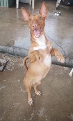 LEO né le 12/08/2019 podenco maneto de 35 cm au garrot, 10 kg attend sa famille après avoir été abandonné.Il vit actuellement en refuge. Il a bon caractère est sociable avec les autres chiens, joueur et disent de lui que c'est un petit clown. Il est ok enfant et chat.