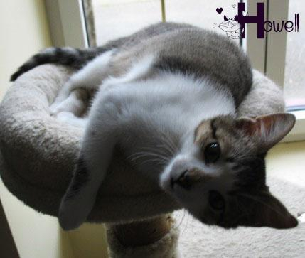 HOWELL est un adorable loulou! Il adore jouer et donner beaucoup d'amour. Il fera le régal de jeunes enfants. Il s'adapte à tout le monde. C'est un chaton gourmand; il ne rate pas l'heure des effilées . HOWELL attend une famille qui le comblera de bonheur.