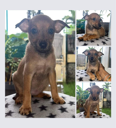 CARAMELLE a ete trouvee avec ses 4 soeurs, abandonnées dans un champ de cannes sur le bord d’une route passante sur l ile de la Reunion par Solenn.