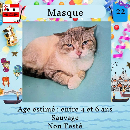 Masque, mâle de 4-6 ans sauvageon (un comportement normal en fourrière) qui vous attend dans une fourrière du 22. ATTENTION SORTIE AU PLUS TARD LE 17/02/2023 (avant euthanasie) !
