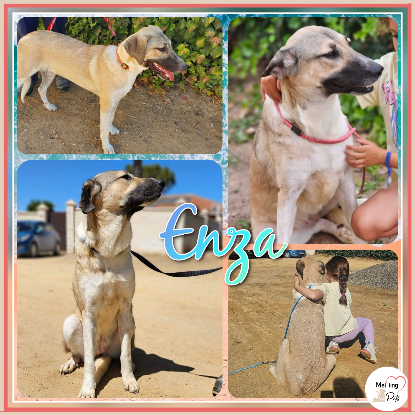 ENZA est une adorable chienne, super sympathique, sociable. Affectueuse. Joueuse. Énormément de qualités.