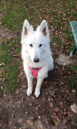 ??Voici Olga, berger blanc suisse de bientôt 5 ans, 28kg, qui cherche une famille en urgence avant qu’il ne lui arrive malheur.