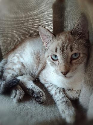 C'est un chaton qui met du temps à faire confiance et qui aura besoin de patience . Il est très joueur , curieux et n'a vraiment aucune agressivité .
