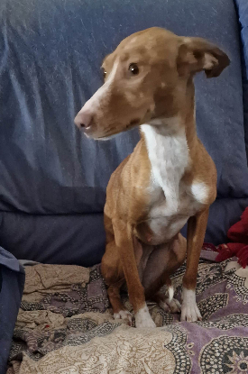 Chiot femelle podenco à l’adoption, MAÂT est une jeune femelle affectueuse et câline, qui apprend la vie de famille et l’amour dans la maison de notre ami Javier, le temps de se remettre sur pattes. Elle a été recueillie, très maigre, après plusieurs jours voir semaines d’errance, et rejoindra bientôt ses copains à 4 pattes dans une pension près de Séville.
