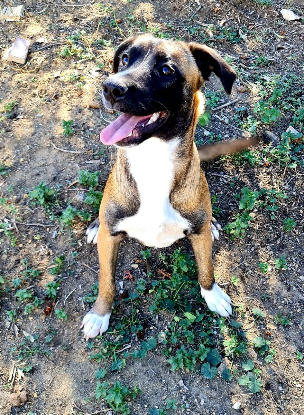 Chiot croisée mastin espagnol à l’adoption, gabarit moyen (environ 30 kg adulte) – environ 10 mois - actuellement en pension en Espagne – femelle – une famille pour cette jeune fifille afin qu’elle ne grandisse pas sans famille – OK chats, chiens, enfants (c’est un chiot) – hyperactive, très dynamique – très câline