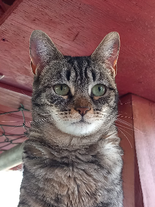 C'est aujourd'hui une minette gentille et affectueuse, très bavarde, mais elle ne vit pas toujours bien la promiscuité de la vie en communauté malgré sa sociabilité avec certains de nos pensionnaires.