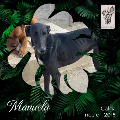 Son histoire : Des ouvriers sont allés installer une cuisine dans une maison et ont vu les conditions terribles dans lesquelles les chiens étaient détenus. Ce type de personne ne donne généralement pas les chiens facilement et jamais aux refuges. Les ouvriers ont demandé à quelques amis de prendre les chiens et la famille leur en a cédé trois : Manuela, Rublo et Clarita. Il reste malheureusement d'autres chiens sur place qu'ils refusent de donner.