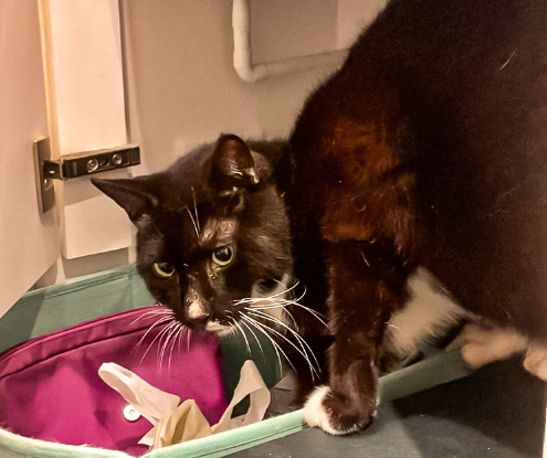 Hortensia est un gentil chat, il a hâte de trouver sa famille pour être totalement en confiance. Il est stressé dans un nouvel environnement, du coup il se cache mais fini par sortir réclamer des caresses. Il faudra être doux avec lui.